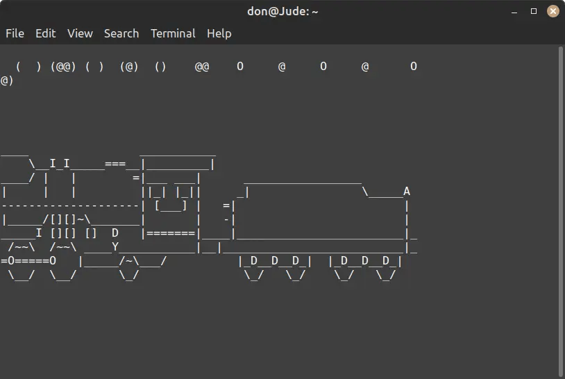 命令的人添加一个幽默的惊喜。 执行时,它会展示一个动画蒸汽机车优雅地穿过终端屏幕。 全体乘客请上车!